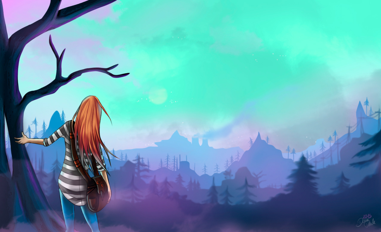 Training my landscape skills I was trying to picture an apocalyptic scene in front of a lonely travelling girl.